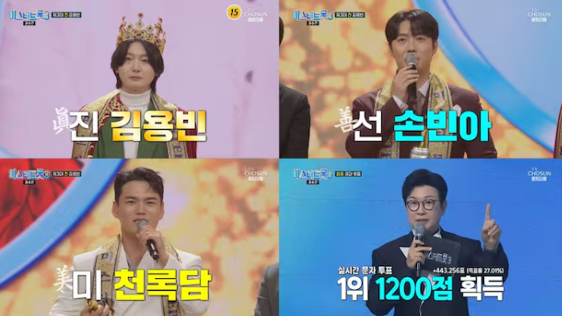 김용빈은 결승전에서 역대급 득표수를 기록하며 ‘미스터트롯 3’의 우승을 확정 지었다..