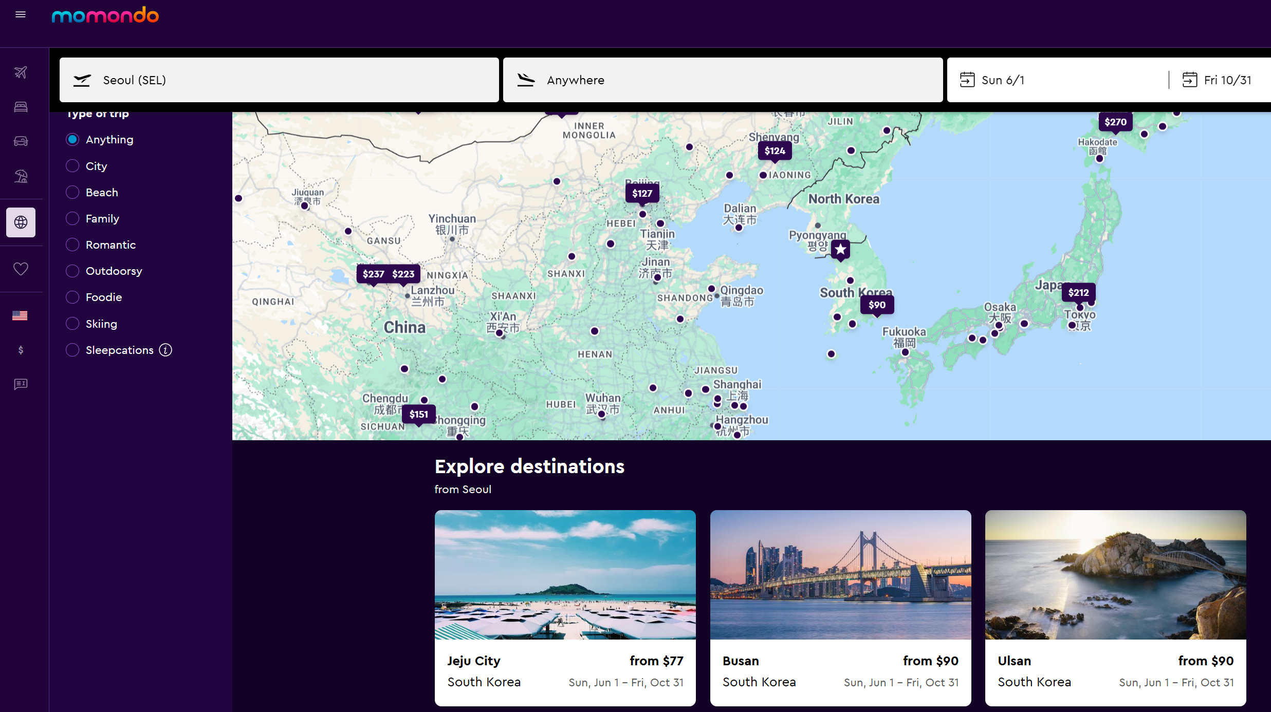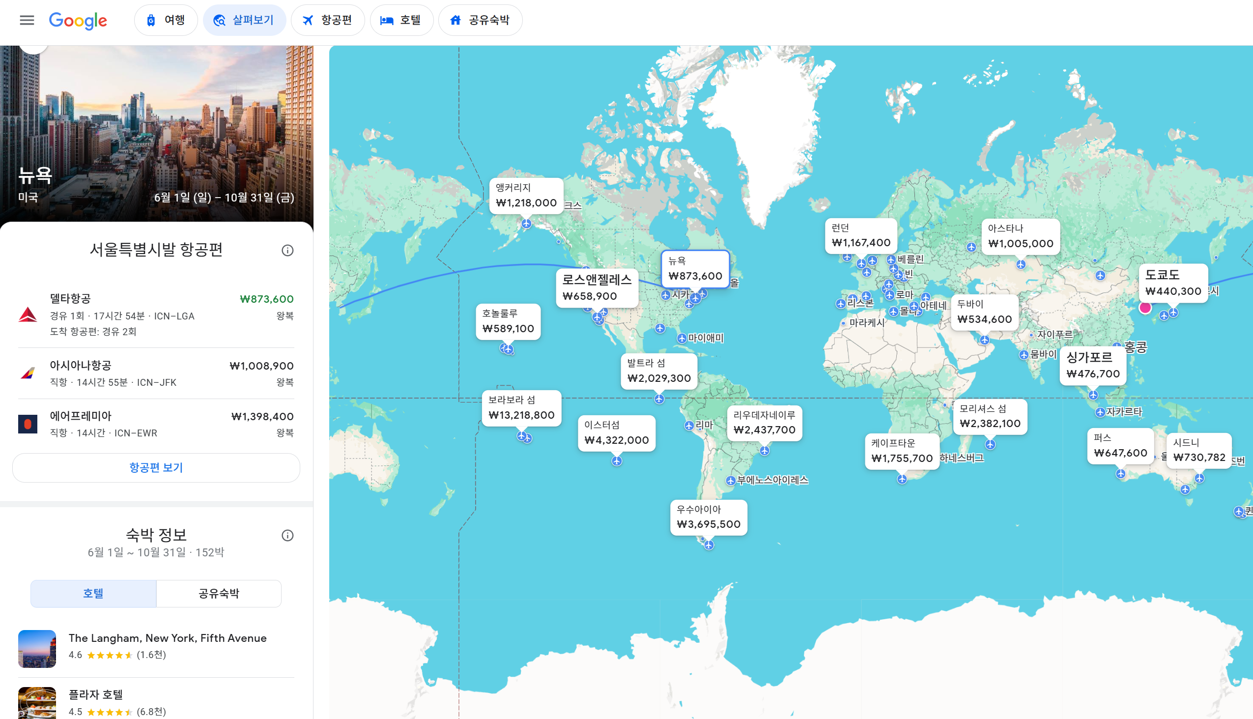 - 'Explore' 기능 활용: 특정 예산으로 떠날 수 있는 다양한 목적지를 지도 형태로 보여줍니다.